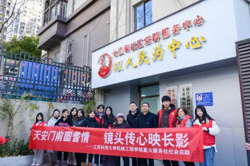 为传承历史记忆,弘扬革命精神,机械工程学院团委和工业设计学生党支部于1月10日上午走进镇江市润州区七里甸社区,开展了一场以“天安门前圆耆情,镜头传心映长影”为主题的实践活动。活动旨在通过帮助老人们与天安门幕布合影,帮助他们实现天安门合影的梦想,唤起他们内心深沉的爱国情怀,并以采访为桥梁,聆听社区老人讲述峥嵘岁月,感受国家发展的磅礴力量。